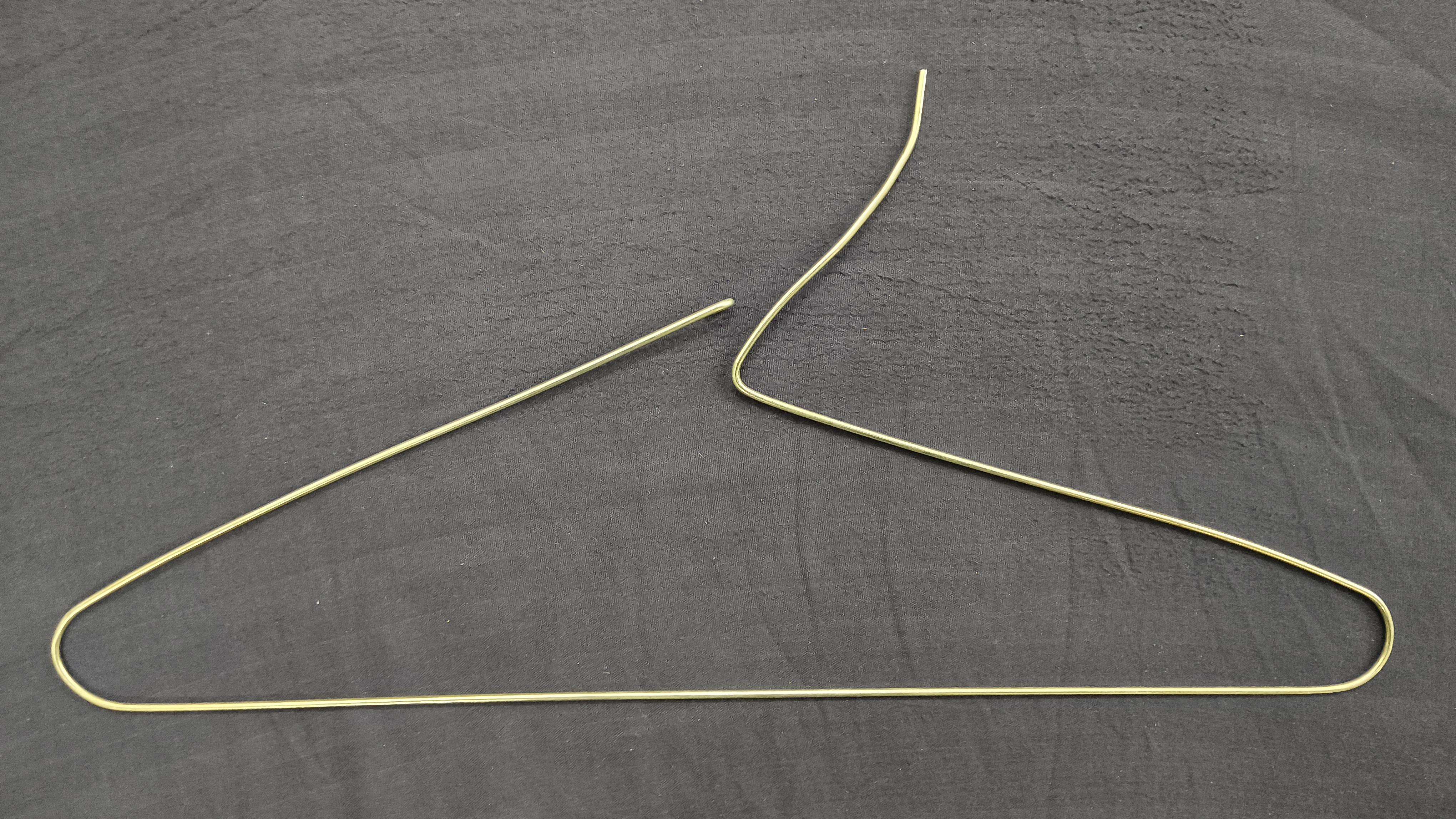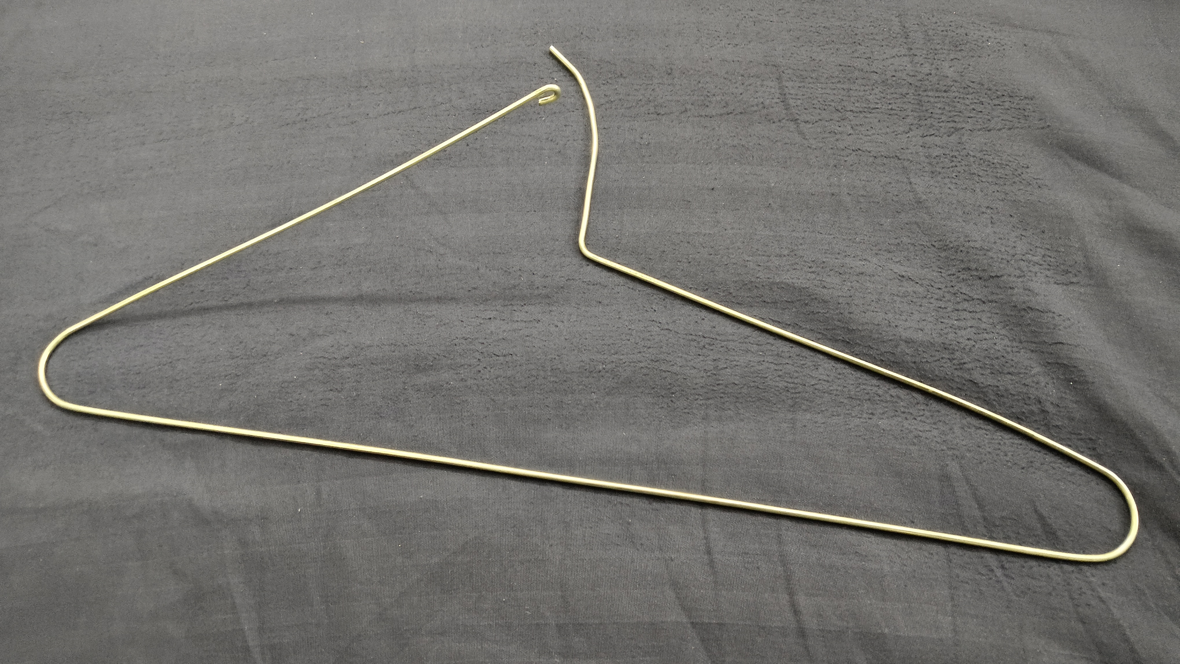 Carefully do this step, as you might accidentally bend the loop-end of the hanger out of plane of the rest of the hanger.
